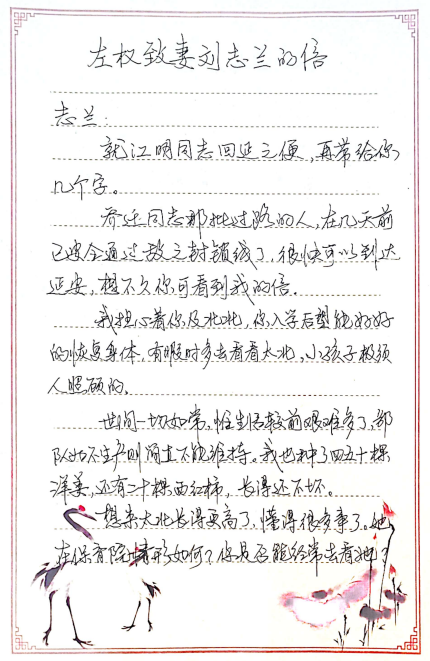 左權致妻劉志蘭的信