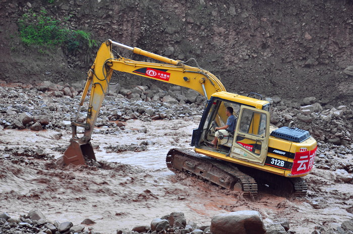 截至20日18時(shí),元謀縣跨龍川江大橋項(xiàng)目部配合武警水電部隊(duì)累計(jì)完成朱布大箐導(dǎo)流槽開挖約500米、寬約24米、深2.5米,開挖量約3萬立方米,完成堰塞湖體作業(yè)面塊石鋪筑1700平方米。但因降雨持續(xù),加之兩村落地質(zhì)條件復(fù)雜,泥石流滑坡體不斷侵入河道,加大救災(zāi)難度,致使進(jìn)度比較緩慢。