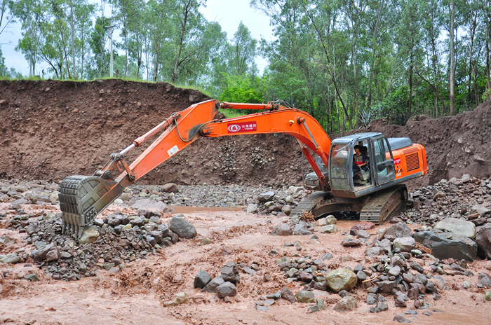 面對最厚達(dá)11米多,平均6米左右的土石方堵塞物,9月20日早晨7點(diǎn)由集團(tuán)總承包一部牽頭,公司五〇一直管項(xiàng)目部、路橋二部組建的搶險(xiǎn)小分隊(duì),立即結(jié)合任務(wù)區(qū)地理?xiàng)l件特點(diǎn),積極會同元謀縣“9·17”特大山洪泥石流災(zāi)害搶險(xiǎn)救災(zāi)指揮部現(xiàn)場制定搶險(xiǎn)方案。果斷采取“礫石換填成基,挖洗沖淤成槽,泄流降水排險(xiǎn),多頭并進(jìn)作業(yè)”的實(shí)施辦法,共組織30人,投入挖機(jī)7臺、裝載機(jī)2臺進(jìn)行堰塞湖下游疏浚施工,并利用1臺無人機(jī)實(shí)時(shí)監(jiān)測現(xiàn)場情況。