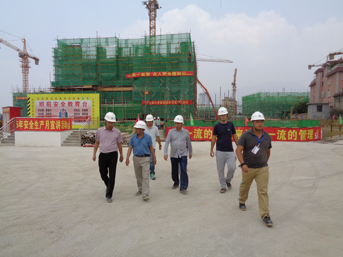 7月11日上午,公司董事長李文智蒞臨第三直管項目部施工的澄江龍潤園一期建設(shè)項目視察指導(dǎo)工作。