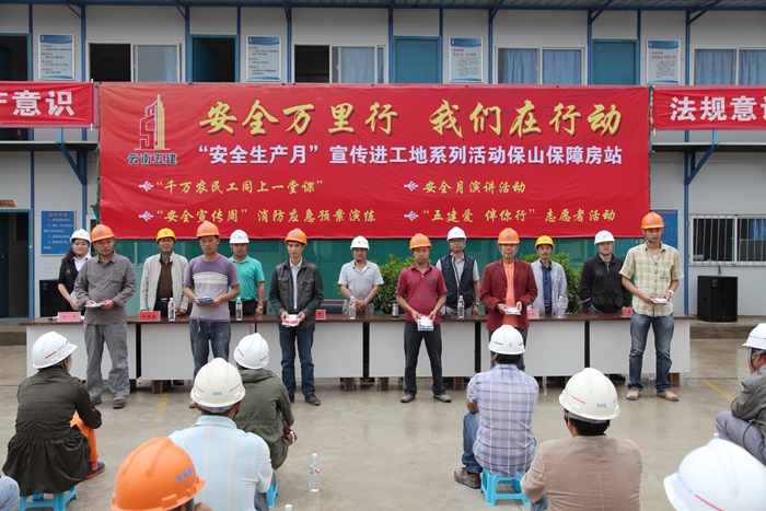 “安全萬(wàn)里行 我們?cè)谛袆?dòng)”,6月15日上午,公司與保山保障房建設(shè)指揮部共同在保山保障房隆陽(yáng)區(qū)5#地塊現(xiàn)場(chǎng)基地組織安全生產(chǎn)月及“千萬(wàn)農(nóng)民工同上一堂課”活動(dòng)。