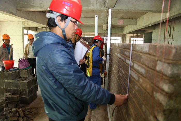 本次比賽于10月28日展開,歷時三天,比賽設置設測量工和砌筑工兩個工種。在經過前期擇優(yōu)選拔的基礎上,每個工種公司各派三名技術能手參加比賽。測量工競賽須經過理論考試和技能操作考試兩項環(huán)節(jié)的測試,并按雙百分制合并計算總成績排名次,因此暫時未出成績。砌筑工免理論考試,只進行技能實際操作比賽,按實際操作成績排名次。砌筑工職業(yè)技能競賽設一、二、三等獎各一名。