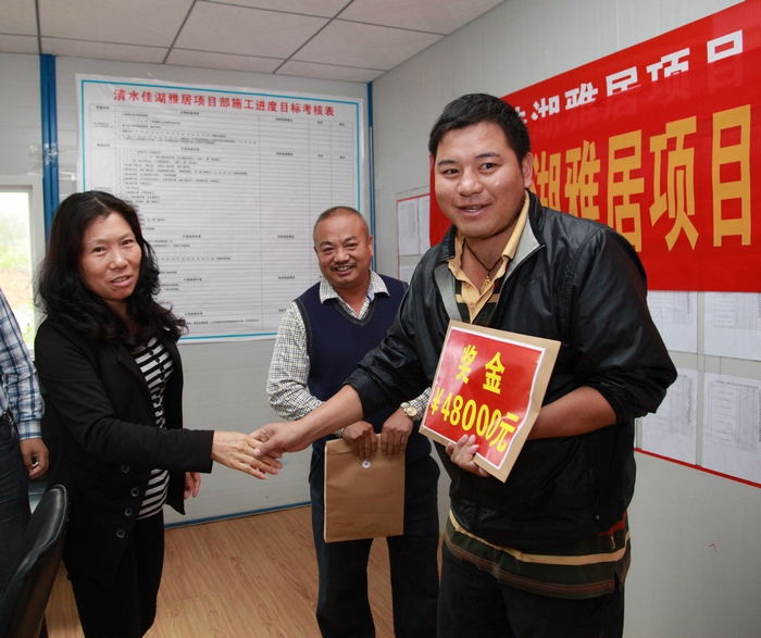 會議宣讀了《清水佳湖雅居項目第一期督導(dǎo)專報》,通報了清水佳湖雅居項目8月目標(biāo)節(jié)點完成情況和公司的獎勵決定。此次節(jié)點考核中,清水佳湖雅居項目完成了第一節(jié)點目標(biāo)的80%,公司對清水佳湖雅居項目部管理人員獎勵4萬8千元,對兩個勞務(wù)公司分別獎勵8萬元,此次獎勵共計20萬零8千元。同時,會議也提出了9月節(jié)點目標(biāo)考核內(nèi)容,希望項目部及勞務(wù)公司相互配合,在規(guī)定時間內(nèi)完成9月節(jié)點目標(biāo)。