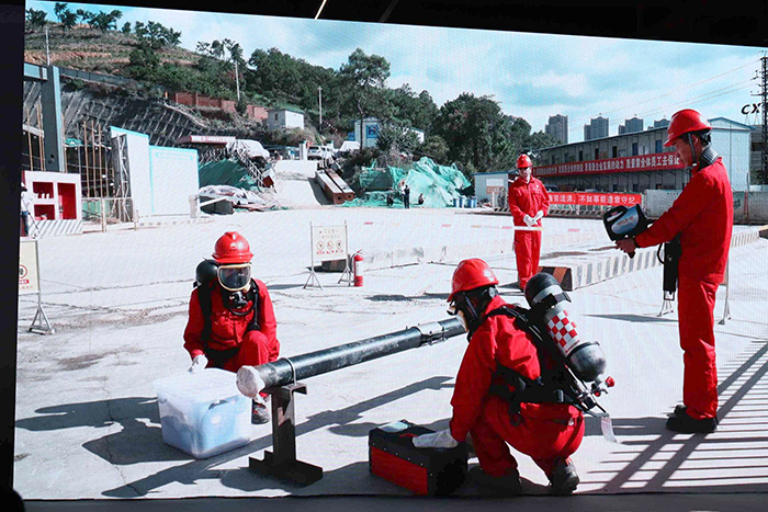 盤龍區(qū)安全生產(chǎn)委員會(huì)辦公室主任、應(yīng)急管理局局長(zhǎng)楊勇宣布活動(dòng)正式開始?;顒?dòng)以視頻在線連接的方式,在現(xiàn)場(chǎng)演示了抗震救災(zāi)、消防安全、反恐及基坑腳手架坍塌事故四個(gè)應(yīng)急救援。其中,抗震救災(zāi)模擬了項(xiàng)目部在發(fā)生地震時(shí)人員組織疏散、現(xiàn)場(chǎng)被困人員救援、市政燃?xì)饣A(chǔ)工程極影搶修等情景;消防安全以項(xiàng)目部電動(dòng)車起火為事件背景,逐一展現(xiàn)了事故上報(bào)、現(xiàn)場(chǎng)安全管制、火災(zāi)救援等過(guò)程;反恐演練模擬項(xiàng)目部有三人持刀闖入并砍傷現(xiàn)場(chǎng)人員的場(chǎng)景,檢驗(yàn)突發(fā)情況下,項(xiàng)目部與政府部門之間的協(xié)同合作能力、應(yīng)急能力與救援能力;基坑腳手架坍塌應(yīng)急救援演練以事故發(fā)生后1名工作被架體材料掩埋為場(chǎng)景,演示了現(xiàn)場(chǎng)救援和應(yīng)急處理過(guò)程。