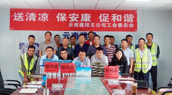 5月23日,近40度的高溫下,公司副總經(jīng)理施文鐘帶隊(duì)奔赴第七直管項(xiàng)目部施工的蘭坪縣營(yíng)盤鎮(zhèn)易地扶貧搬遷項(xiàng)目、蘭福公路項(xiàng)目調(diào)研,并代表公司領(lǐng)導(dǎo)班子,與公司工會(huì)人員開(kāi)展“送清涼、保安康、促和諧”的送清涼慰問(wèn)活動(dòng)。