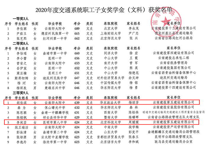 9月11日,2020年度云南省公路學(xué)會(huì)職工子女考入重點(diǎn)院校獎(jiǎng)學(xué)金評(píng)審結(jié)果發(fā)布,公司申報(bào)的兩名職工子女分均獲得文科類三等獎(jiǎng),獲得獎(jiǎng)學(xué)金1200元。 2020年職工子女獎(jiǎng)學(xué)金理工類申報(bào)評(píng)獎(jiǎng)的起點(diǎn)線定為625分,文史類申報(bào)評(píng)獎(jiǎng)的起點(diǎn)線為620分,并被重點(diǎn)院校錄取的交通系統(tǒng)(含外系統(tǒng)公路學(xué)會(huì)團(tuán)體會(huì)員單位)職工子女考生中擇優(yōu)評(píng)獎(jiǎng)。安一部職工楊瓊芳女兒胡佳琪,以高考成績(jī)647分...
