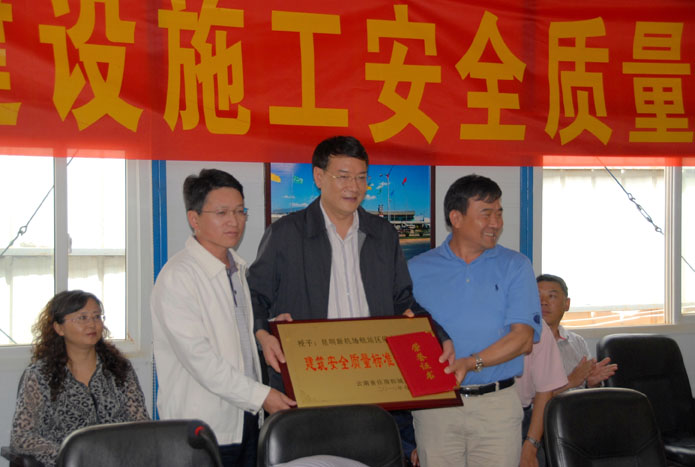 7月14日,省、市、區(qū)建設(shè)行政主管部門,安全生產(chǎn)監(jiān)督部門和昆明新機(jī)場(chǎng)建設(shè)指揮部的領(lǐng)導(dǎo)和專家蒞臨五有限公司新機(jī)場(chǎng)項(xiàng)目部檢查和指導(dǎo)工作,在參觀了停車樓工程現(xiàn)場(chǎng)施工情況后,召開昆明新機(jī)場(chǎng)建設(shè)施工安全質(zhì)量標(biāo)準(zhǔn)化工作現(xiàn)場(chǎng)會(huì)。會(huì)上,省建設(shè)廳副廳長郭五代向五公司頒發(fā)了獎(jiǎng)牌和證書。 會(huì)議首先由五公司副總經(jīng)理、新機(jī)場(chǎng)直管部經(jīng)理王磊邦向與會(huì)領(lǐng)導(dǎo)和專家匯報(bào)了新機(jī)場(chǎng)航站區(qū)...