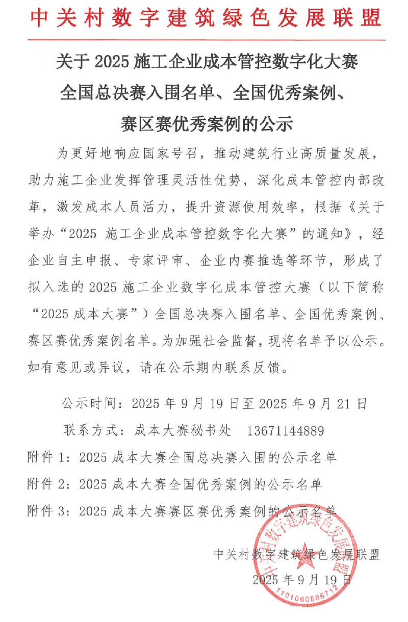 公司兩個(gè)項(xiàng)目在“2025年施工企業(yè)成本管控?cái)?shù)字化大賽”中榮獲佳績(jī)