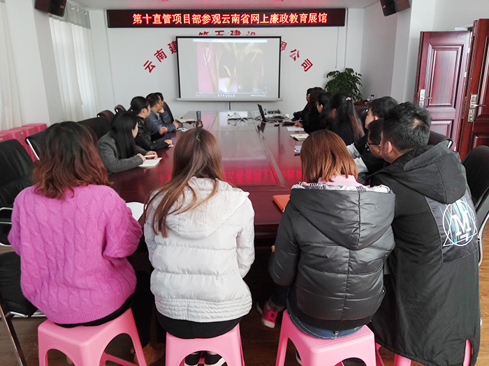 12月12日,公司第十直管項(xiàng)目部組織在昆領(lǐng)導(dǎo)班子成員、在昆黨員及二線(xiàn)職工召開(kāi)廉政教育學(xué)習(xí)會(huì)。 會(huì)上運(yùn)用投影儀放映的方式瀏覽了云南省網(wǎng)上廉政教育展館進(jìn)行了集中參觀。云南省網(wǎng)上廉政教育展館由廉政教育基地集群、廉政圖書(shū)館、廉政資料庫(kù)、廉政影院四大模塊組成。大家集中觀看了展館“廉政影院”里的廉政教育影片《權(quán)利的迷途》,影片以云龍縣...